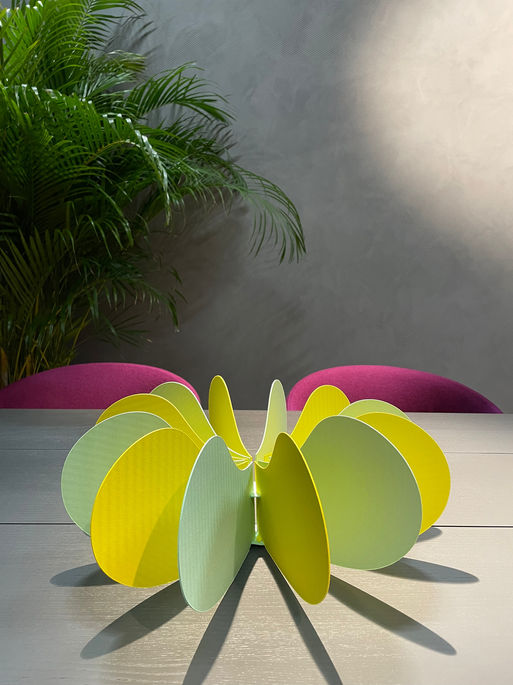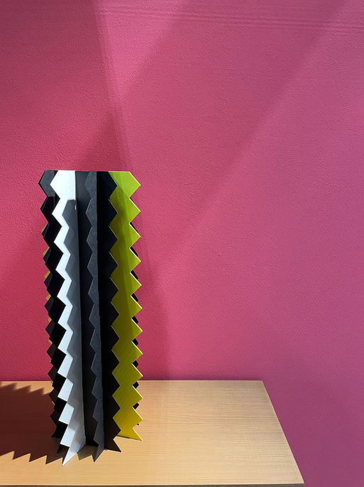 These objects were designed as part of the ORGATEC Fair installation to style the exhibition while remaining transport-efficient. Using paper as the primary material, Maria developed flat-cut shapes that could be easily assembled on site and give rhythm and vibrancy to the space.